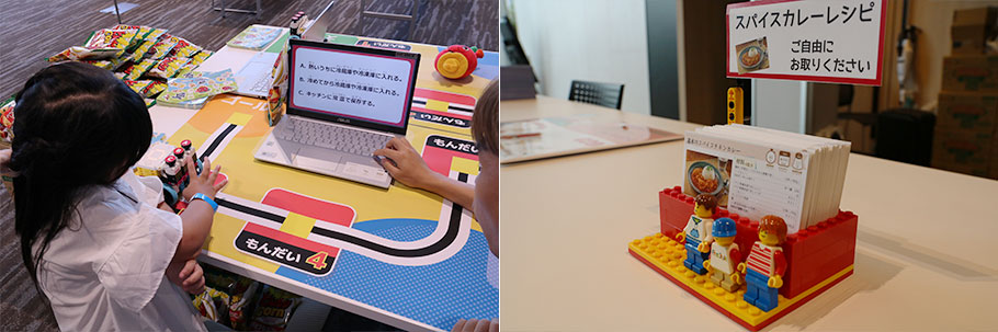 カレーに関するクイズを、ロボットに取り付けられたボタンを使って解く体験も!?
