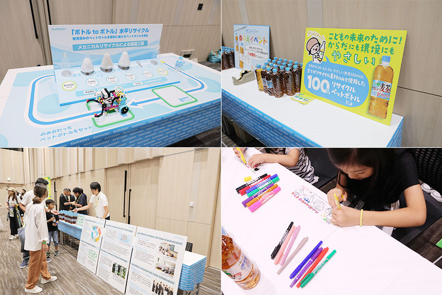サントリーフーズ様が出展するブースでは、環境保護の一環として行われているペットボトルのリサイクルの仕組みを、子どもたちが使っているロボットを使って表現したり、サステナブルボトルを利用した飲料の配布も行われました。