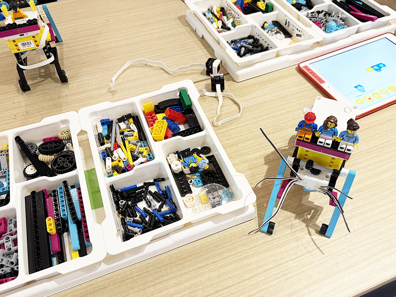 ワークショップでは、組立図を見ながらモーターやパーツを取り付けて「いきものロボット」を制作。プログラミングで歩く速さや歩数を調整し、独特の動きをさせて本当に生きているかのようなロボットに仕上げました。