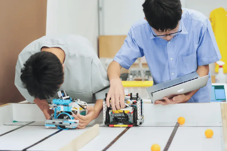 個別もしくはチームで探求テーマを設定し、それぞれに取り組みを行います。ロボットだけではなくAIを使用する教材、電子工作デバイスなど、学習レベルに応じた教材も使用できます。