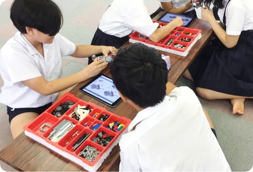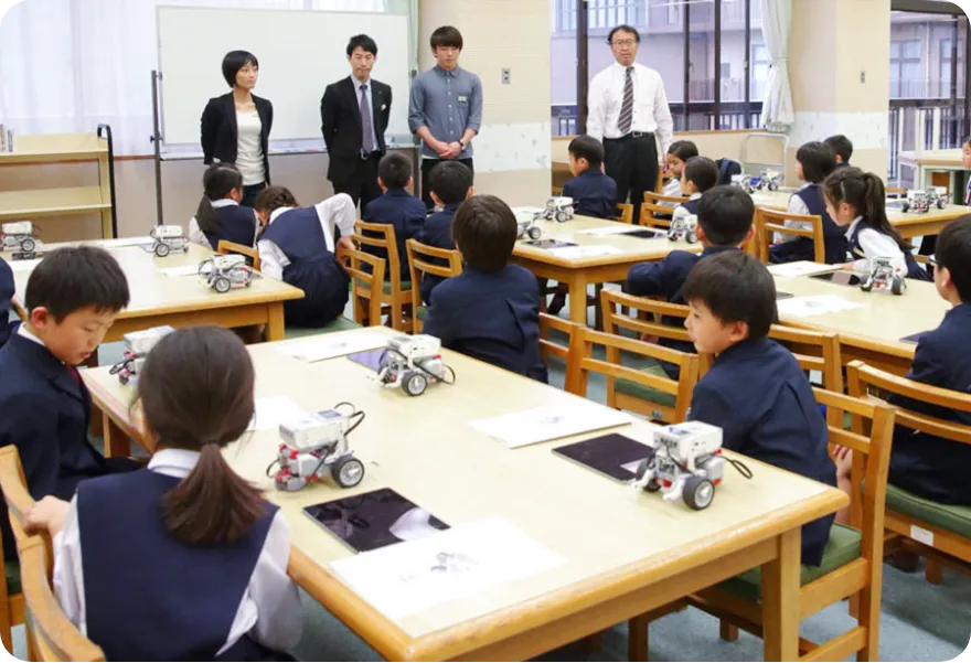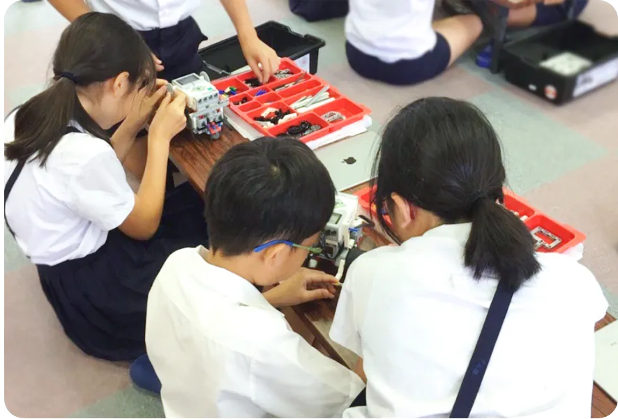 プログラボのカリキュラムをもとに、学校のニーズに合わせて授業内容を作ります。算数、理科、社会など正規の授業内容をテーマにして実施することも可能です。